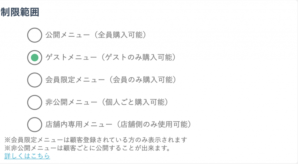 非公開メニューをネット予約画面に表示しない設定です。