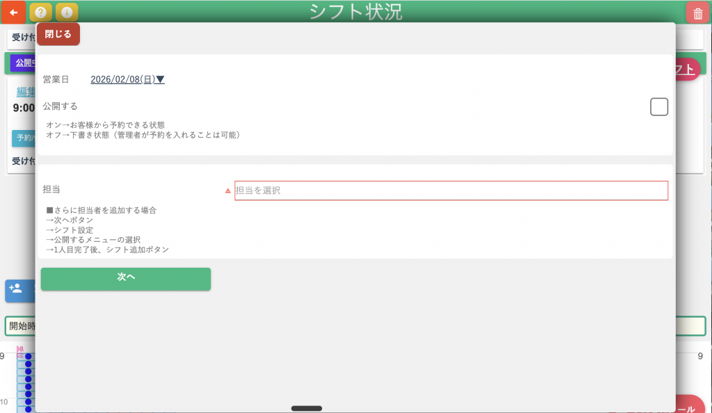 営業日(シフト)を作って「公開」します