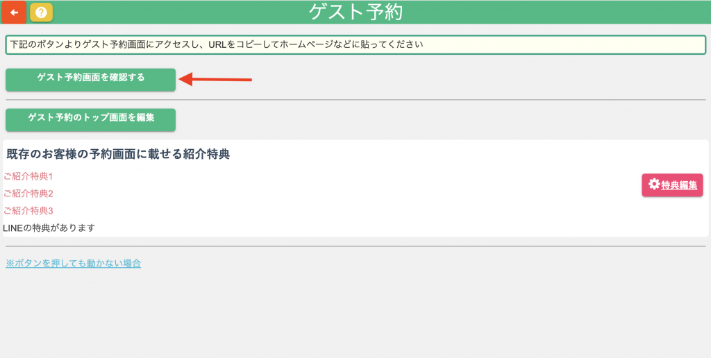 ゲスト予約画面を開くボタンより確認できます