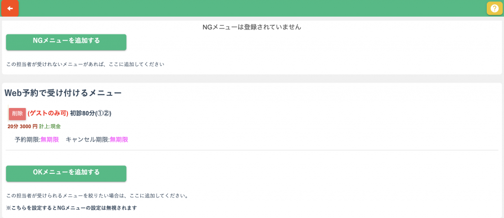 指名予約・最大受付数・非公開メニューの扱い