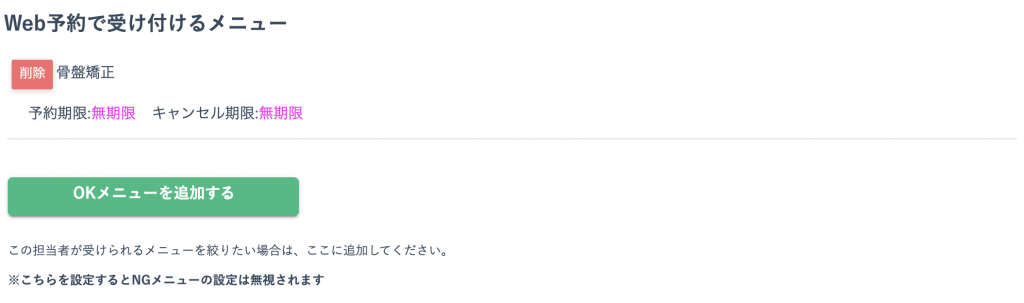 OKメニューを追加すると、この担当者が受ける予約を制限します。