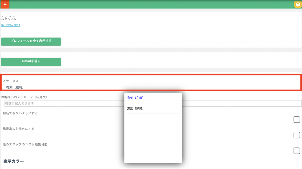 *ステータスを無効にした後にシフトを削除する手順は、シフトが非表示になるため避けてください。