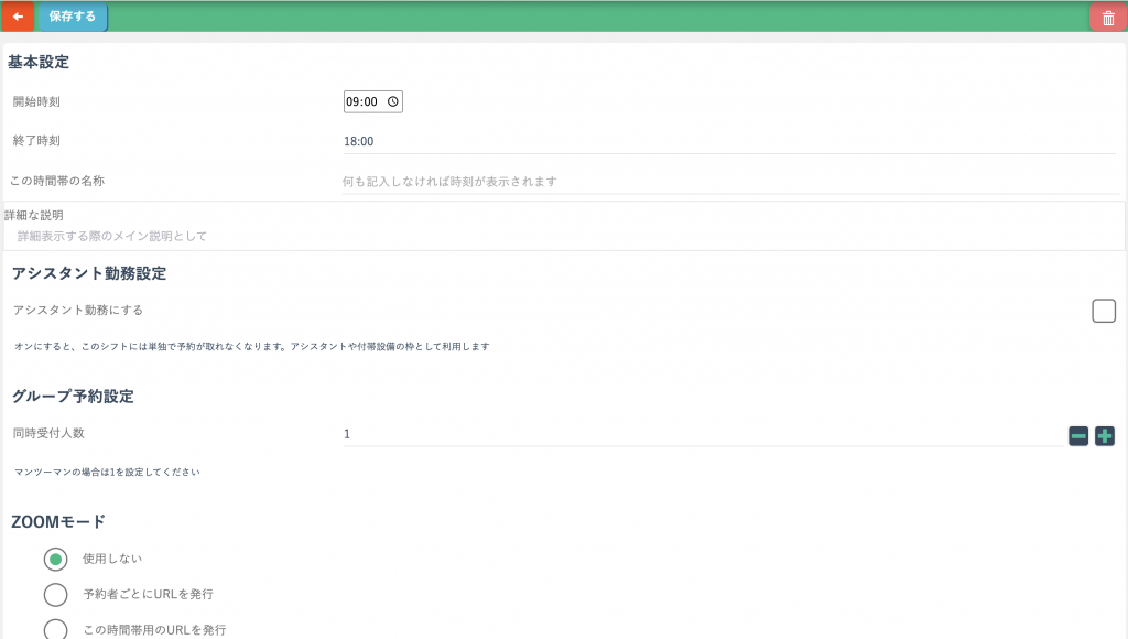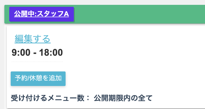 ※担当者ごとに休みを設定する場合は、こちらではなくスケジュール画面より、