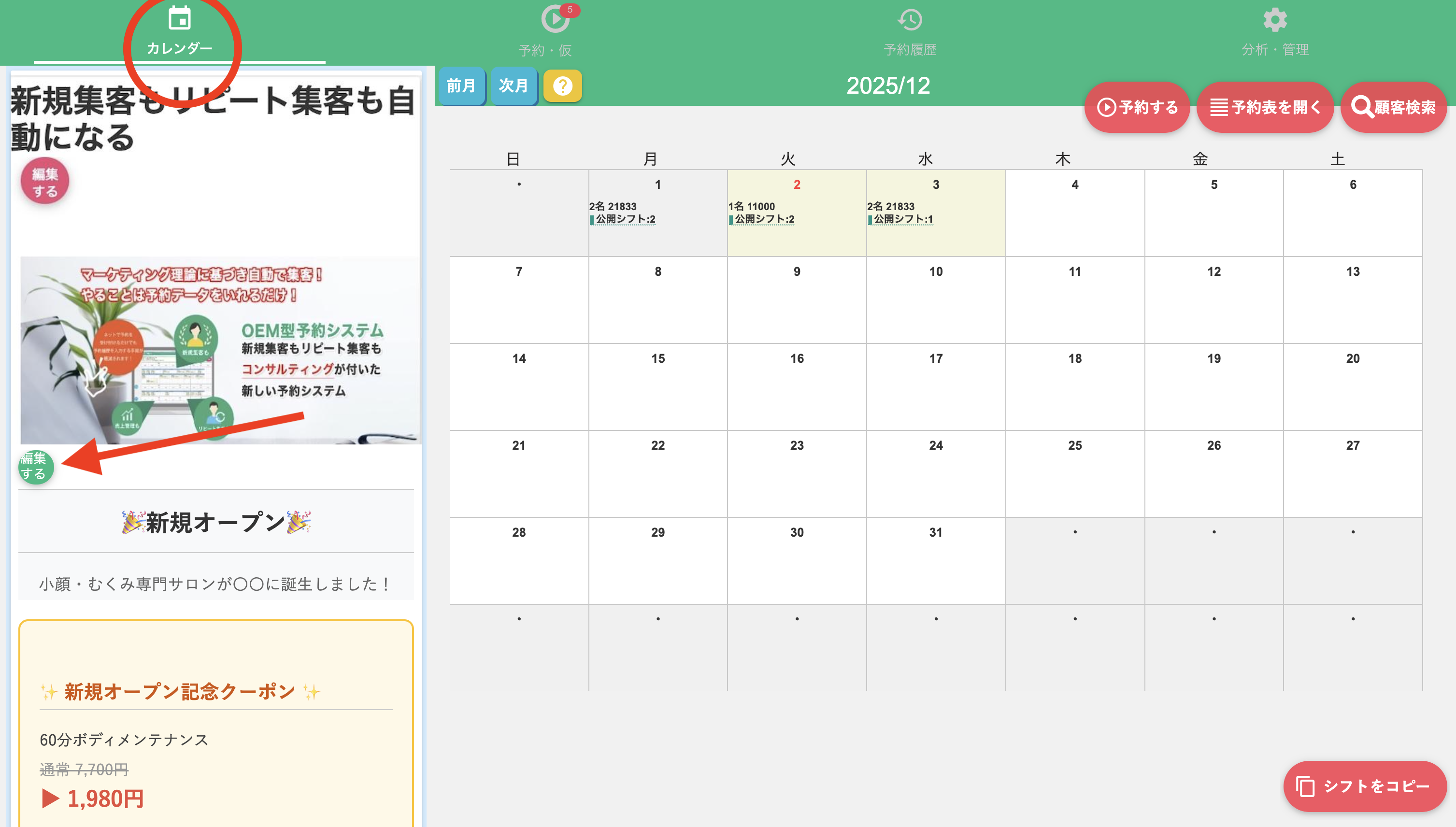 特典(クーポン)設定をしておくと、初回予約促進効果があります。