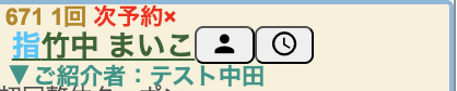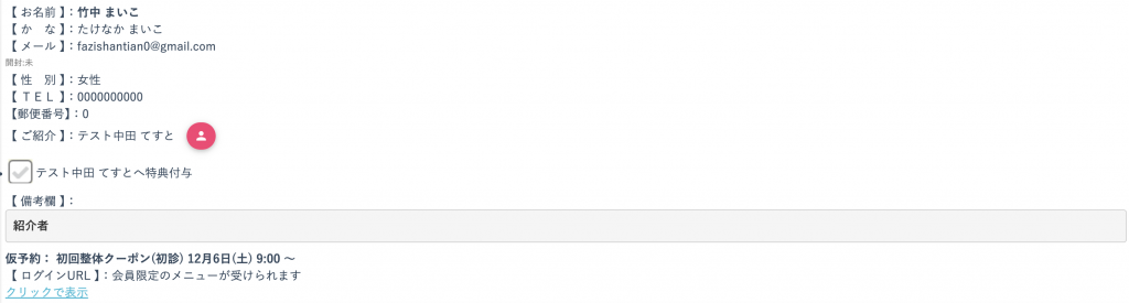 新規お客様を紹介したお客様の予約状況画面の表示。