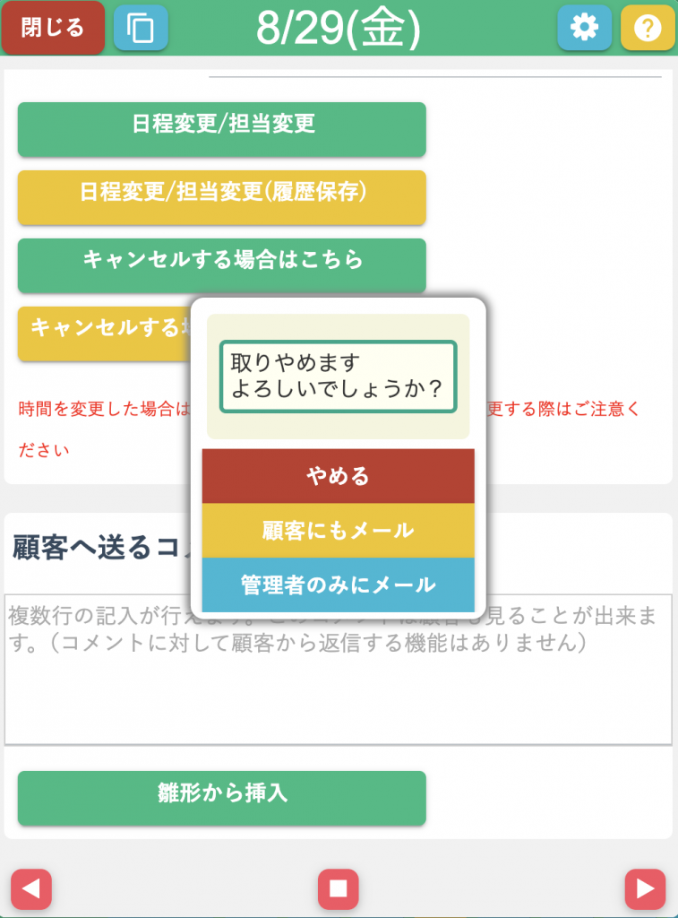 既に入っている予約がキャンセルになったら、キャンセル処理をします。