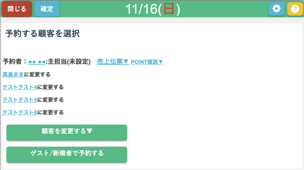 予約表の画面右下の歯車の設定ボタンを押します![]()