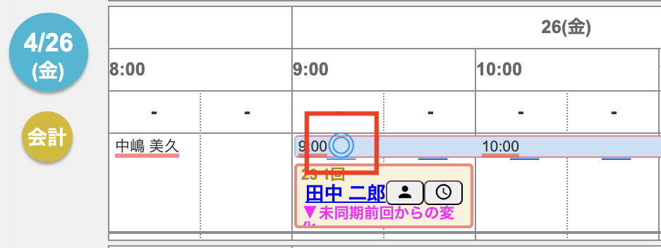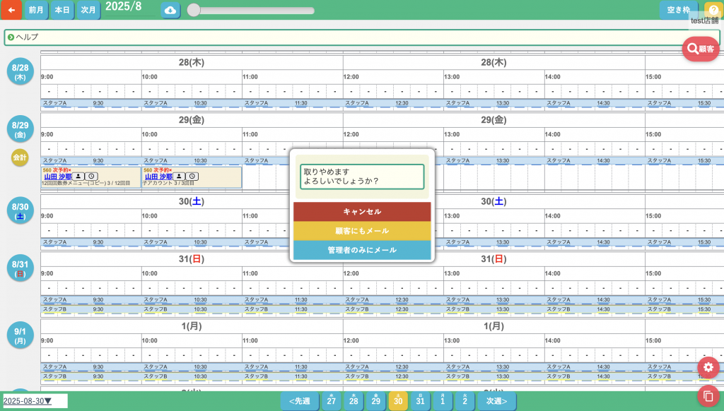 次に、予約表から顧客名横の人型アイコンをクリックしてキャンセルする方法です。
