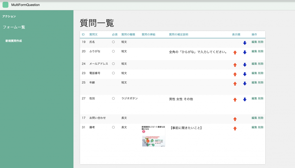 質問内容に答える欄はありません。画面でも記載していますが、質問はメニューの参考にします。