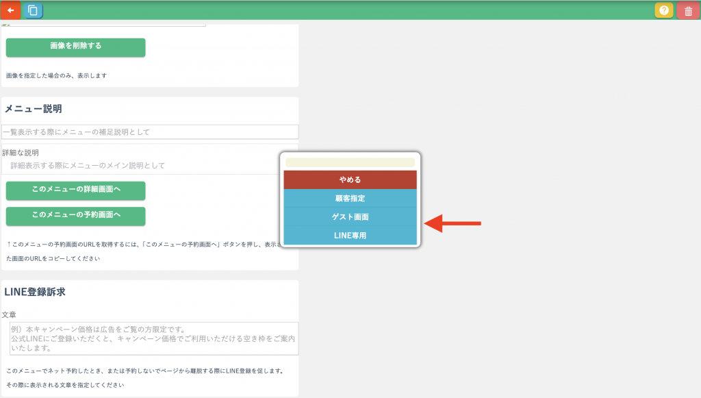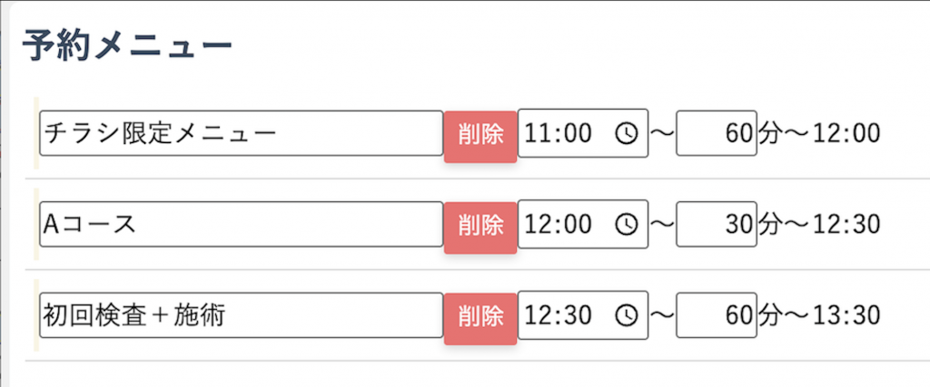ので、表向きのメニューで予約してもらいたい場合に使用します。