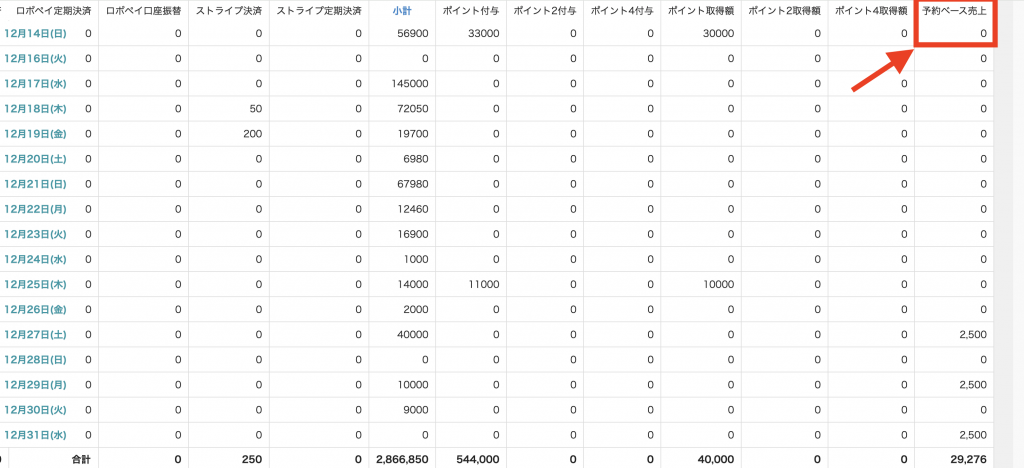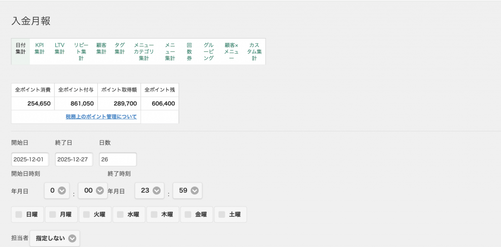 ポイントを利用して施術した方は、日計集計のポイント消費と予約ベース売上をご参照ください。
