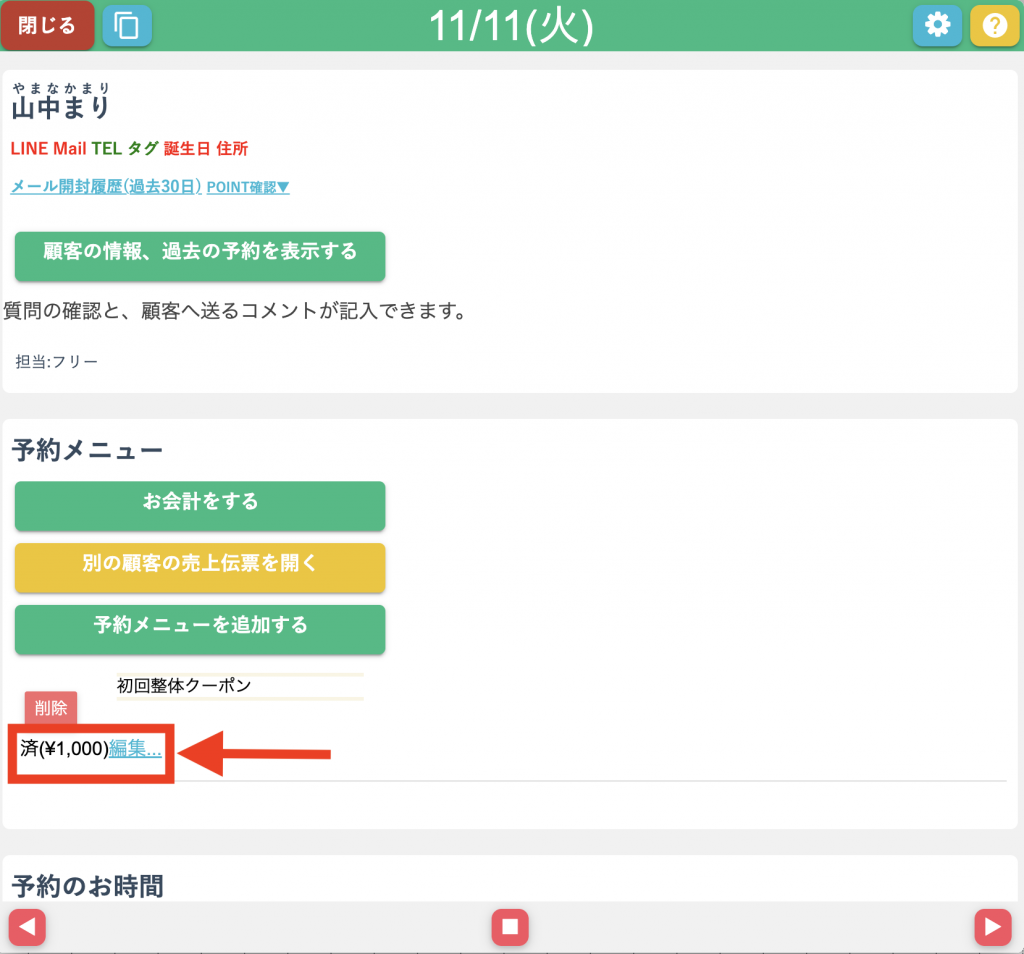 - 8 [中級]回数券の回数手動調整/施術や物販の未払い対応