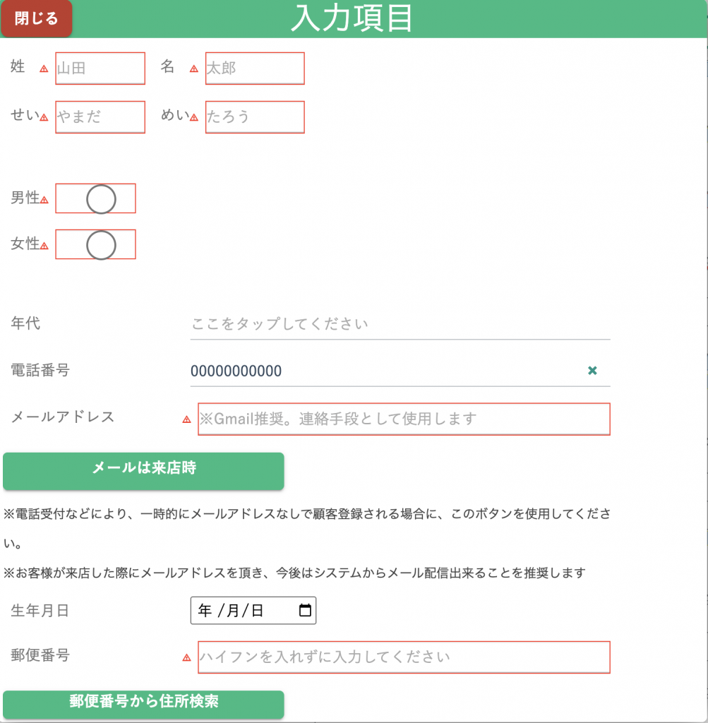 ※電話番号は必須ですが、わからない場合は00000000000と記入してください。