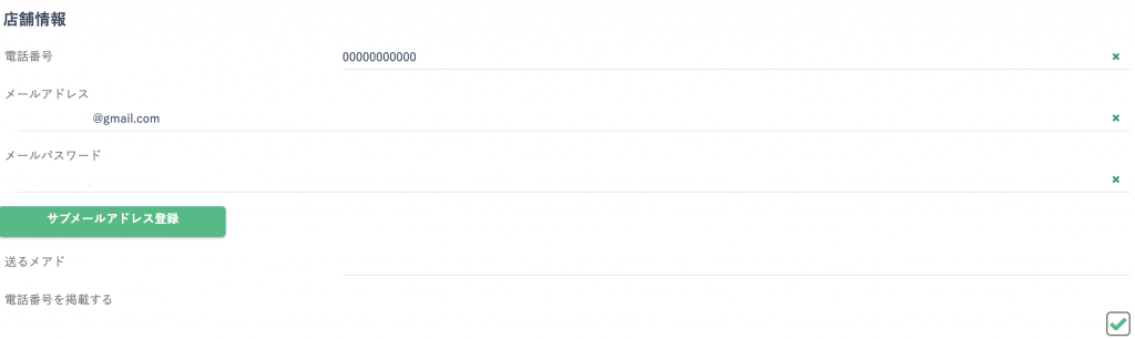 メールアドレスと電話番号はメール配信およびショートメール送信で使用します。