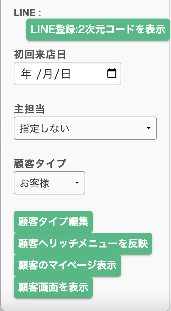 予約履歴タブや、予約表より顧客を選択しプロフィールを表示します。